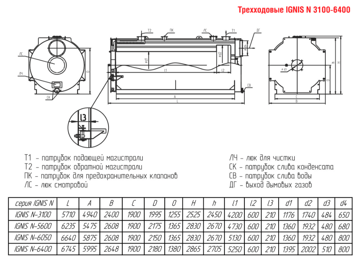 Технические характеристики водогрейного трёхходового котла для тепличных хозяйств ARCUS IGNIS N-5600